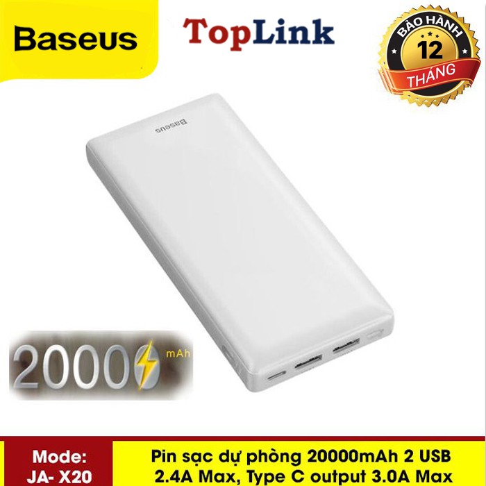 Pin Sạc Dự Phòng X20 JA Dung Lượng 20000mah Fast Charge Cho Iphone/ Smartphone/ Tablet ( 5V/3A, 2 Port USB, Type C PD In /Out)Chào mừng bạn đến với TOPLINK - Thế Giới Phụ Kiện