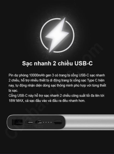 Dung lượng pin 10000mAhThiết kế vỏ kim loại nguyên khối