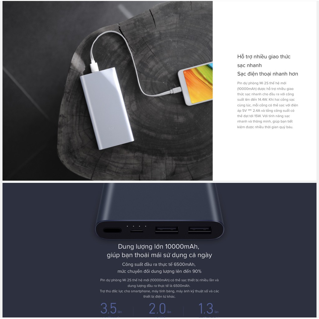 - Theo thường lệ cứ mỗi dịp cuối năm, Xiaomi, hãng công nghệ lớn của Trung Quốc lại lên lịch để nâng cấp các sản phẩm của mình. Nếu như năm 2017 chúng ta đón nhận sự ra đời của MI S2 với những thay đổi lớn trong thiết kế. Thì năm 2018 này, sẽ là Pin sạc dự phòng XIAOMI MI S2 10000mAh QC 3.0 18W New (2018): phiên bản nâng cấp không chỉ có sự thay đổi về ngoại hình, mà cả về tính năng cũng có nhiều nâng cấp đáng chú ý, hứa hẹn sẽ mang đến cho người dùng những trải nghiệm mới hoàn hảo hơn.