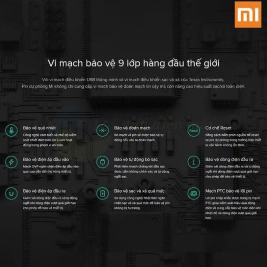 Như một trang bị không thể thiếu trên các sản phẩm pin sạc dự phòng của mình, pin sạc dự phòng Xiaomi 10000mAh gen 3-New version cũng được trang bị các công nghệ an toàn như bảo vệ quá nhiệt, bảo vệ khi có sự cố quá dòng hoặc quá áp cho cả đầu ra và đầu vào, bảo vệ chống đảo ngược, bảo vệ ngắn mạch,…..Những trang bị này sẽ giúp viên pin này làm việc một cách an toàn hơn, không chỉ với thiết bị cắm sạc mà cả sự an toàn của người dùng.