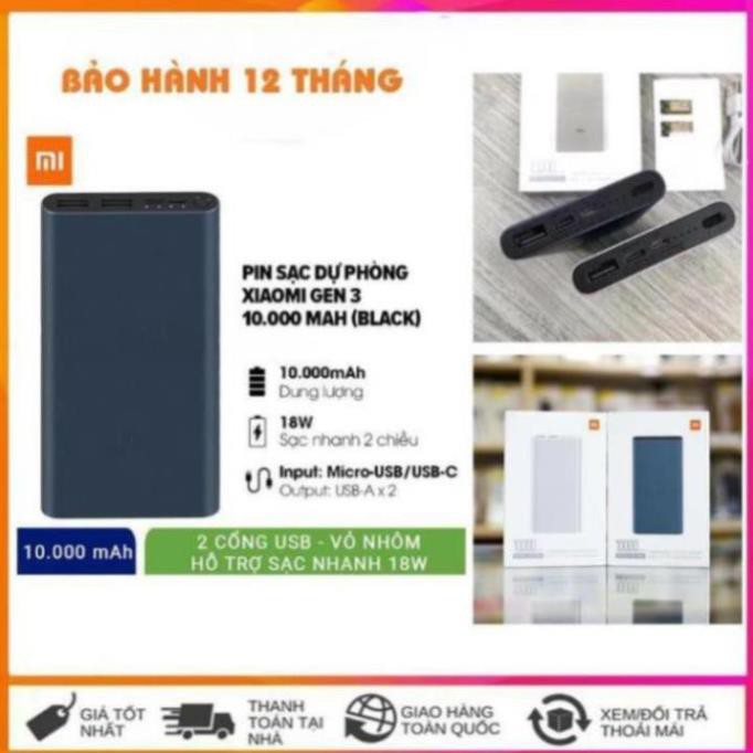 🎯 MPVC Từ đơn hàng 50k🎯Pin Sạc Dự Phòng Xiaomi 10000mAh Gen 3 New 2020 Sạc Nhanh QC 3.0