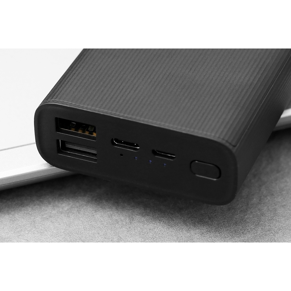 Pin sạc dự phòng Polymer 10.000mAh Type C Xiaomi Power Bank 3 Ultra Compact đen gần như chỉ bằng 1 tấm thẻ ngân hàng, trọng lượng 200 gram, không chiếm diện tích, cho bạn dễ dàng bỏ vào túi quần, balo, túi xách và mang theo bên mình khi cần. Bề mặt phủ màu đen tuyền phong cách, có đường kẻ dọc bám tay, cầm nắm chắc chắn hơn.