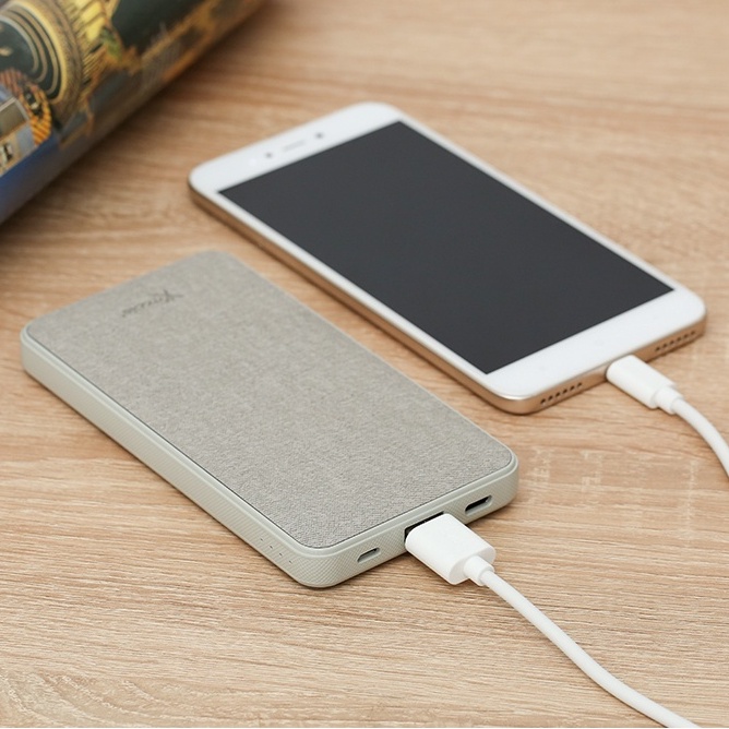 - Sang trọng với vỏ bọc Fabric chống trơn trượt, thiết kế nhỏ gọn dễ mang theo.- Cổng ra USB USB Quick Charge 3.0 giúp sạc nhanh, tương thích với nhiều thiết bị.