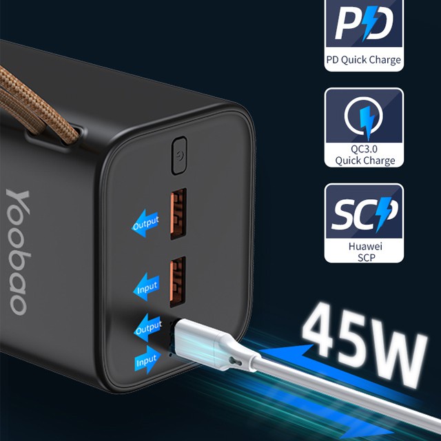 Pin sạc dự phòng Yoobao H40, dung lượng 40000mAh, công suất 45W sạc nhanh cho điện thoại, macbook, laptop