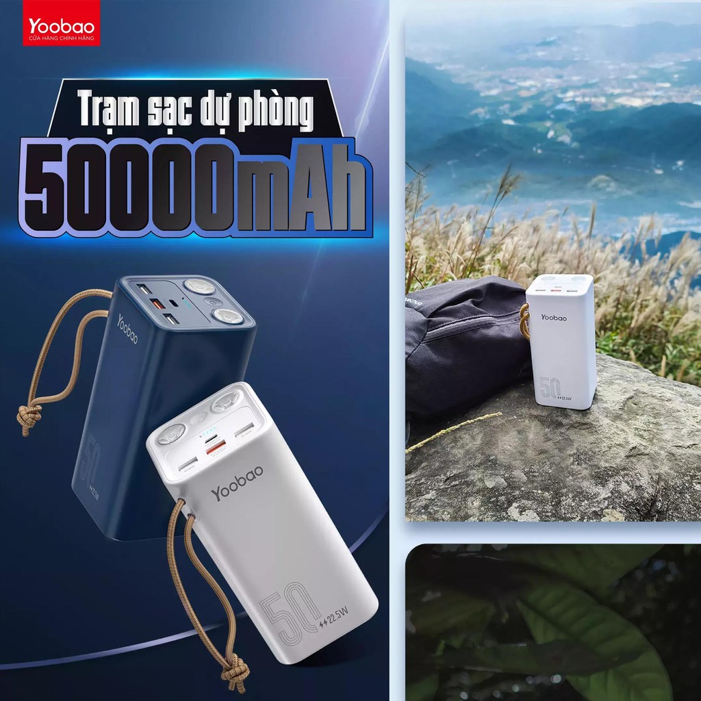 Giới thiệu Pin Sạc Dự Phòng Yoobao H5 / L50 Dung Lượng 50000 mAh, Tích Hợp Đèn Pin Siêu Sáng, Hỗ Trợ Sạc Nhanh PD