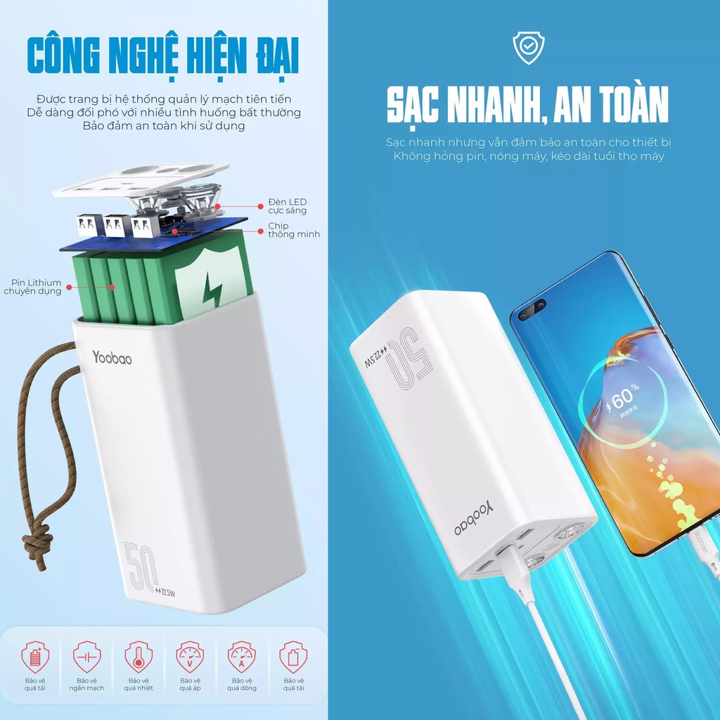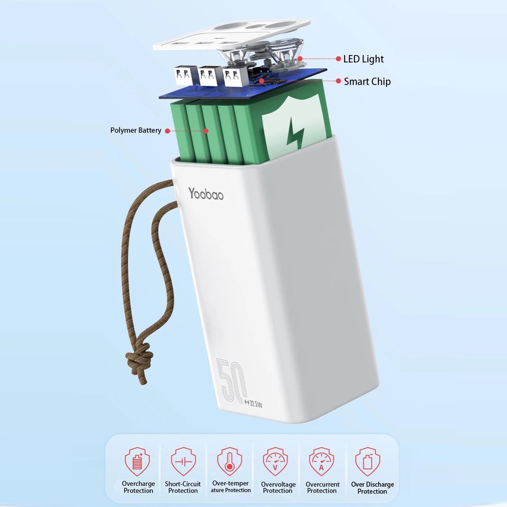 Pin Sạc Dự Phòng Yoobao H5 / L50 Dung Lượng 50000 mAh, Tích Hợp Đèn Pin Siêu Sáng, Hỗ Trợ Sạc Nhanh PD
