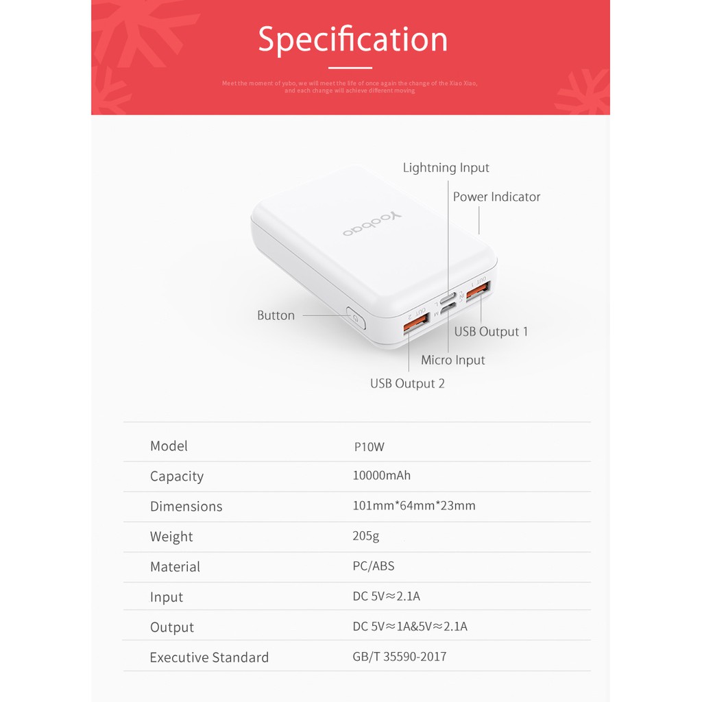 Thương hiệu: Yoobao | Xem thêm các sản phẩm Pin sạc dự phòng di động của YoobaoMô tả ngắn