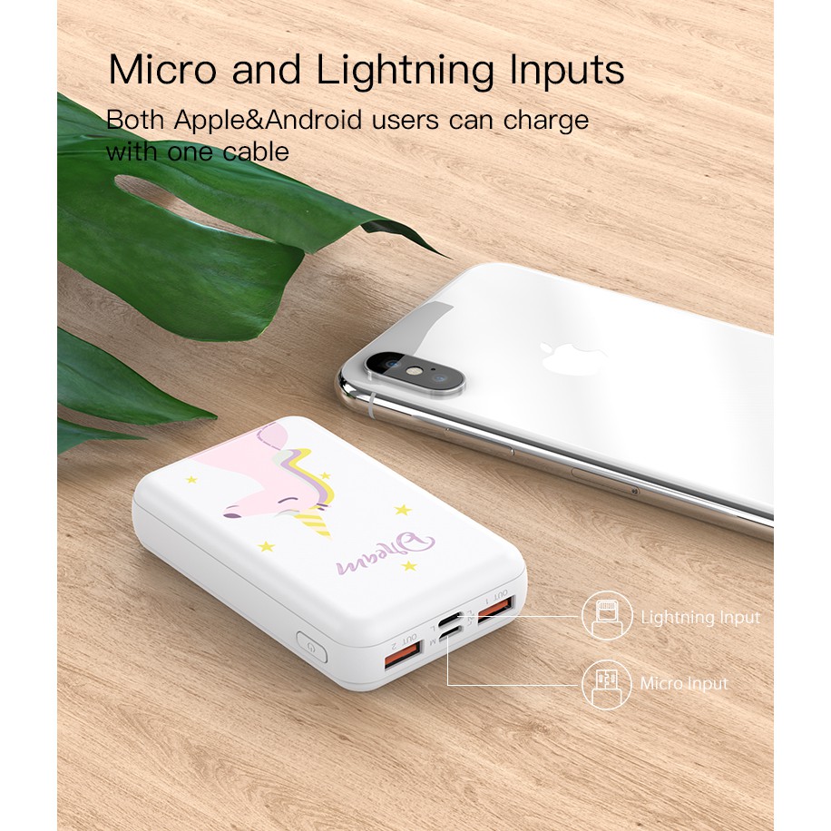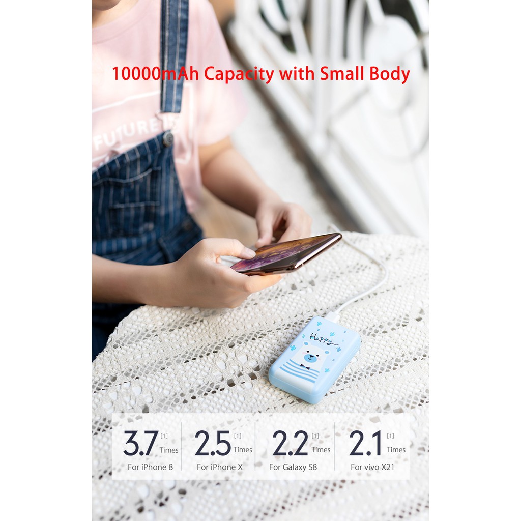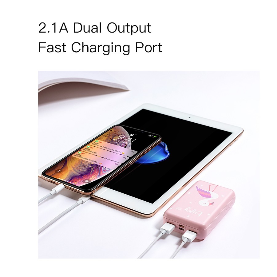 Thiết kế thời trang, dễ thương từ họa tiết đến màu sắcDung lượng pin 10000mAh thoải mái sạc đầy 2-3 lần thiết bị