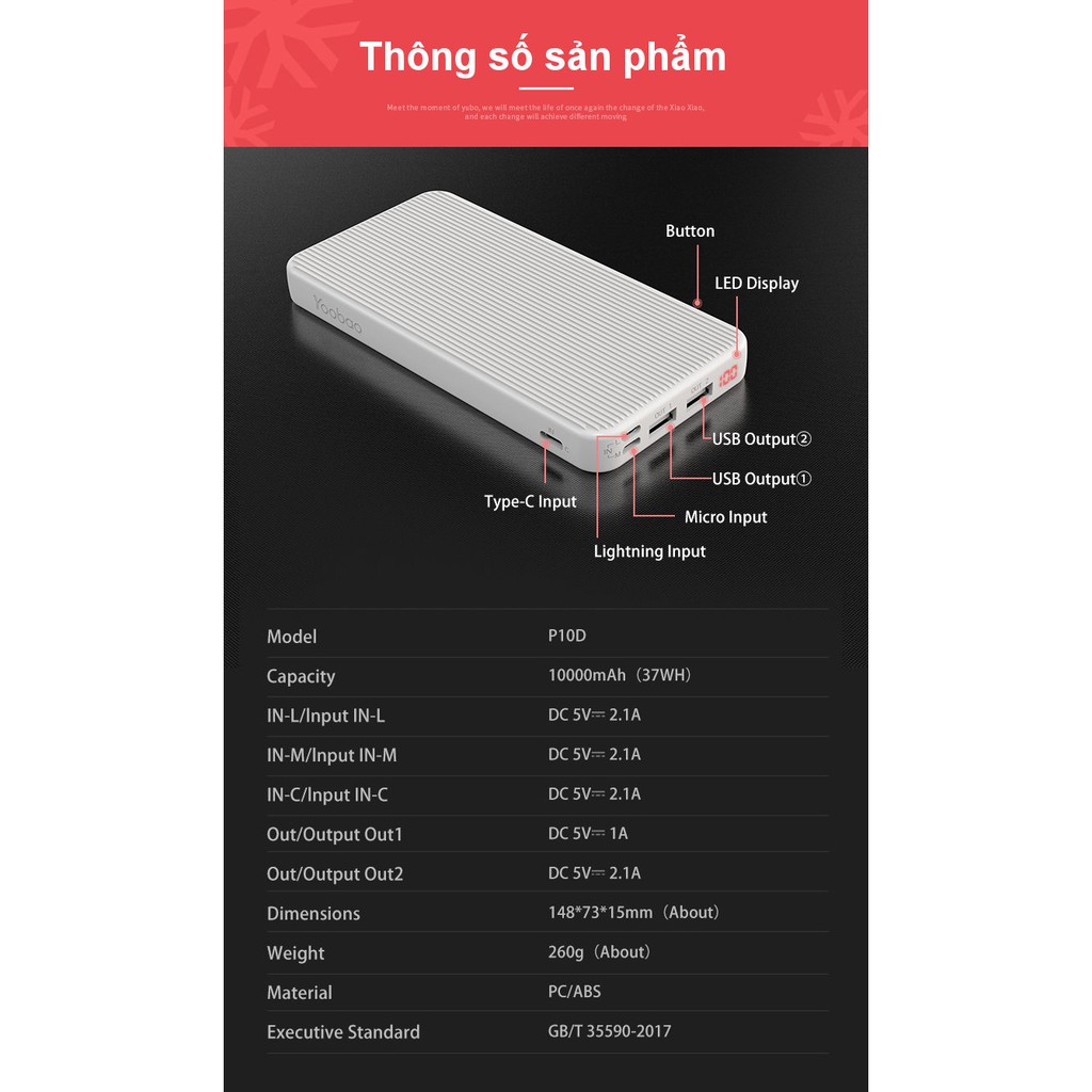 Thương hiệu: Yoobao | Xem thêm các sản phẩm Pin sạc dự phòng di động của YoobaoMô tả ngắn