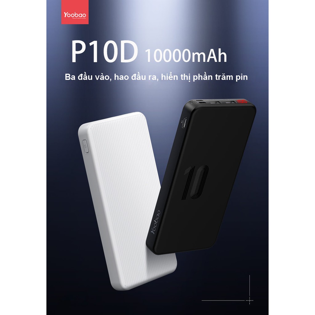 Pin Sạc dự phòng YOOBAO P10D 10000mAh Slim; Ba đầu vào/ Hai đầu ra/ LED - Chính Hãng