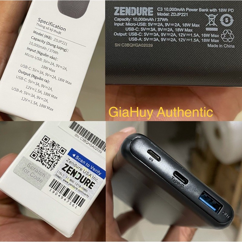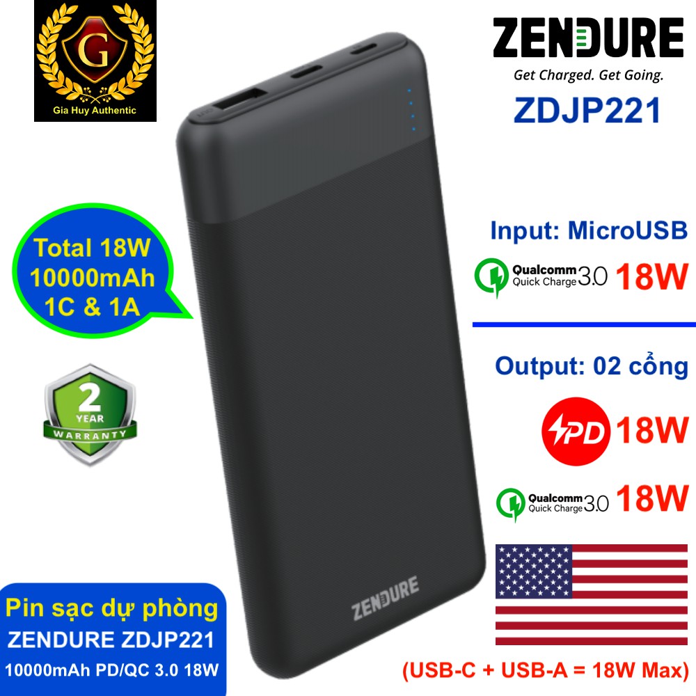 - Zendure ZDJP221 không những sạc nhanh mà còn sạc an toàn, dung lượng 10.000 mAh, kết hợp cổng nguồn vào và nguồn ra USB-C PD 18W, chất liệu cao cấp đạt tiểu chuẩn, đảm bảo an toàn cho người sử dụng