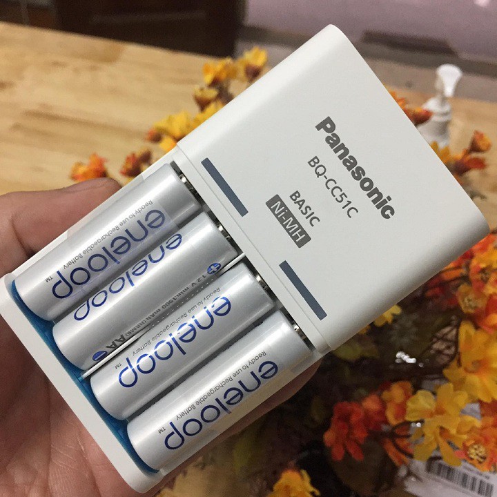 Bộ pin sạc Eneloop AA gồm sạc và 4 Pin AA 1900mAhPin P a n a so n i c Eneloop cho thời gian sử dụng và lưu trữ pin lâu và tốt hơn các loại pin thông thường ( Lên tới 5 năm)