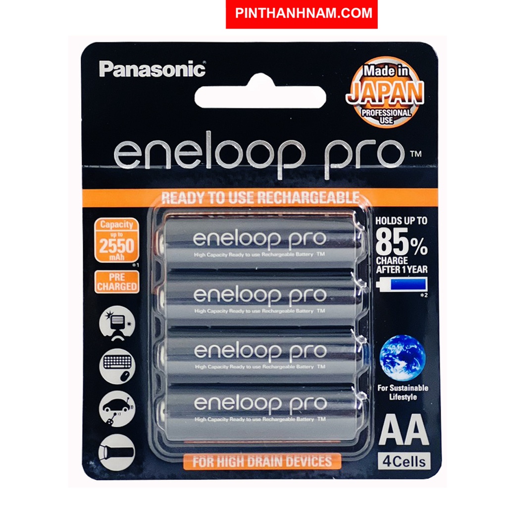 - Pin sạc Eneloop Panasonic Pro 2550mAh vỉ 4 viên chính hãng- Pin tiểu AA sạc Panasonic Eneloop Pro