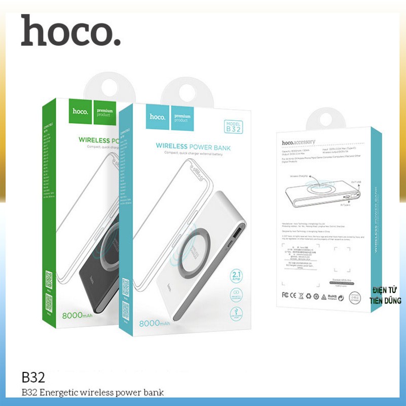 - Sạc dự phòng không dây Hoco B32 là phụ kiện cao cấp đón đầu xu hướng công nghệ của tương lai, hỗ trợ việc sử dụng điện thoại thêm đẳng cấp và tiện dụng.