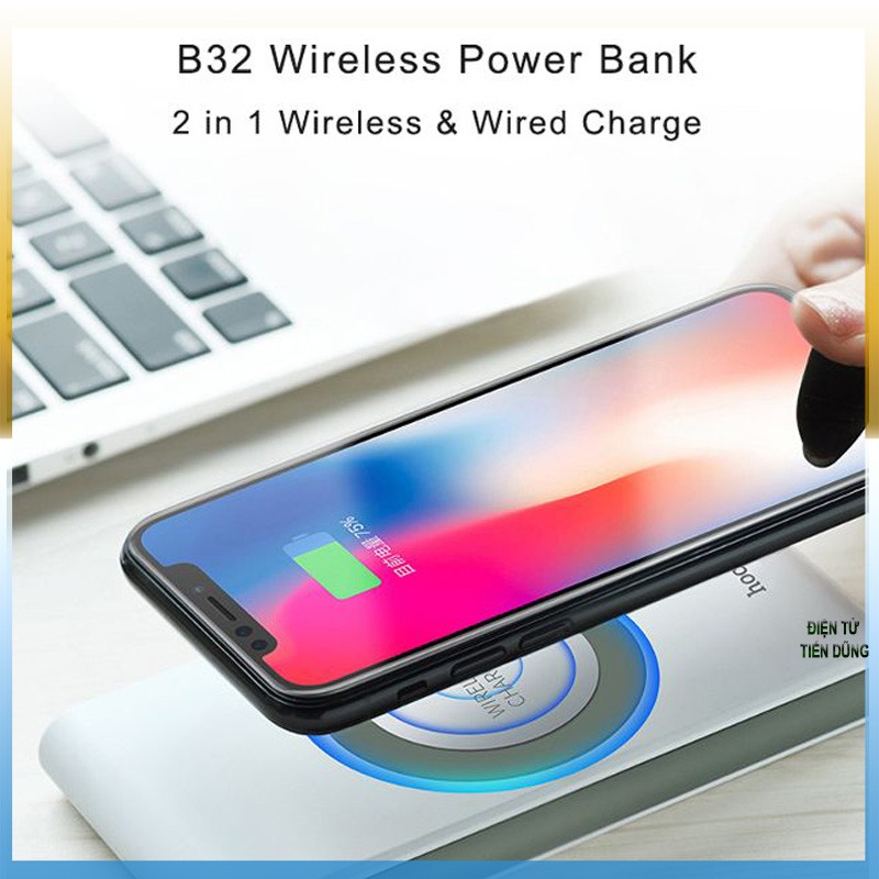 - Sạc dự phòng không dây Hoco B32 bắt kịp xu hướng sạc không dây cao cấp, hiện đại nhất ngày nay, với thiết kế gọn nhẹ, sang trọng, giúp sạc pin nhanh hơn, tiện lợi, dễ dàng sử dụng và mang theo bất cứ đâu.