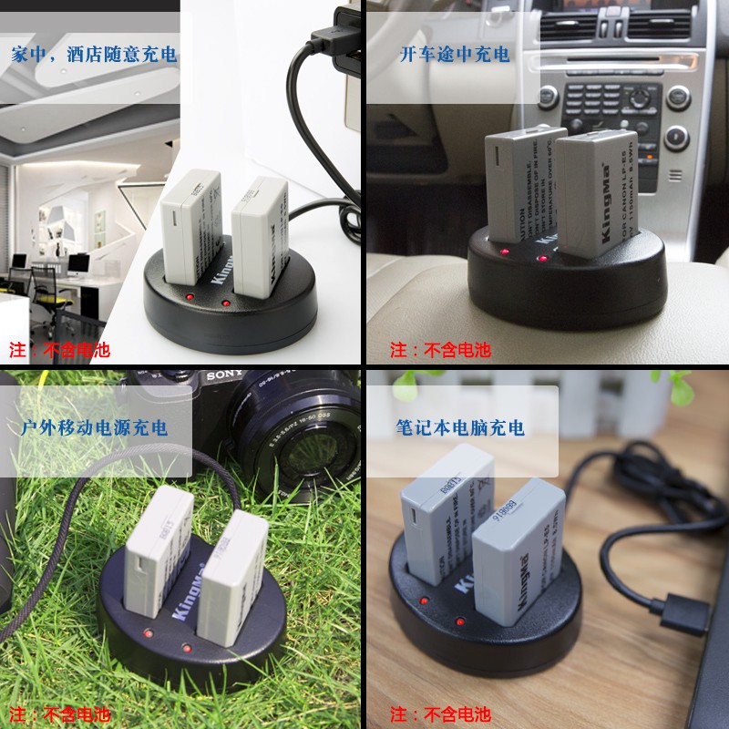 - Tích hợp 2 pin và 1 bộ sạc USB kép với 1 dây Micro USB cho Canon LP-E5