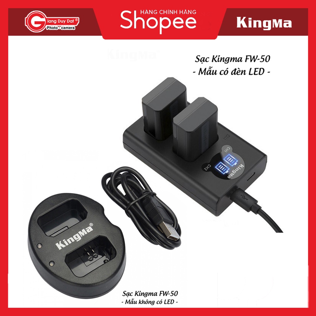- Bộ sạc USB KingMa kép cho pin máy ảnh NP-FW50 thế hệ mới 2019