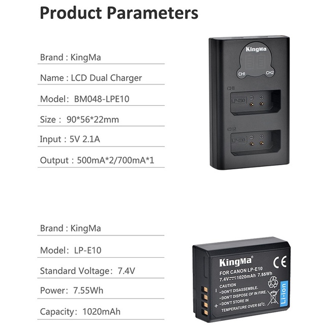 Giới thiệu Pin sạc Kingma Ver 2 cho Canon LP-E10 (Nhiều lựa chọn)