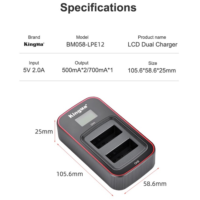 Thương hiệu: Kingma | Xem thêm các sản phẩm Pin - Sạc máy ảnh, máy quay của KingmaMô tả ngắn