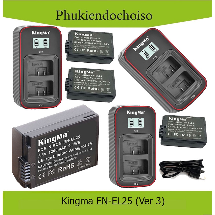 Bộ sản phẩm gồm nhiều lựa chọn:+ 2 pin 1 sạc Kingma EN-EL25