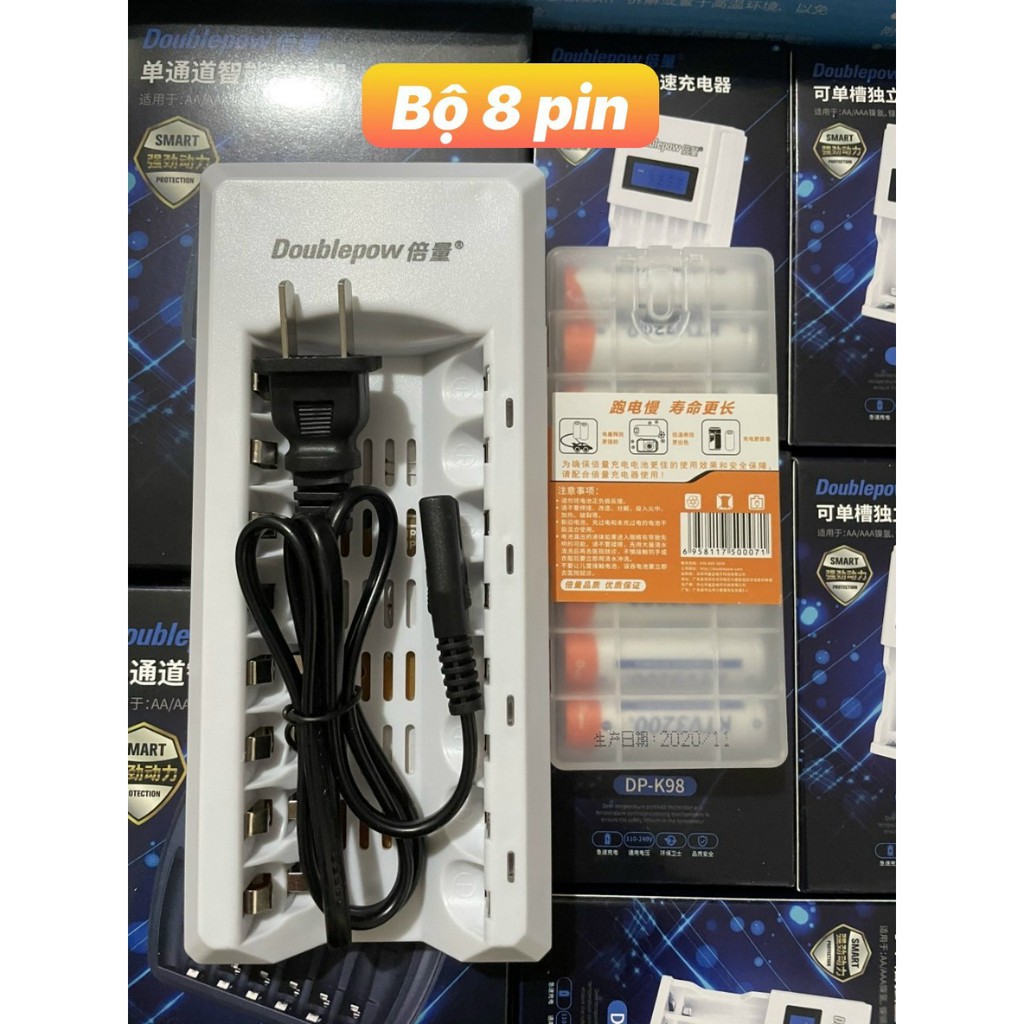 * 01 Sạc Doublepow K18 sạc cùng lúc được 8 viên pin, Có thể sạc Pin tiểu AA hoặc Pin đũa AAA. Sạc có chức năng tự ngắt khi pin đầy