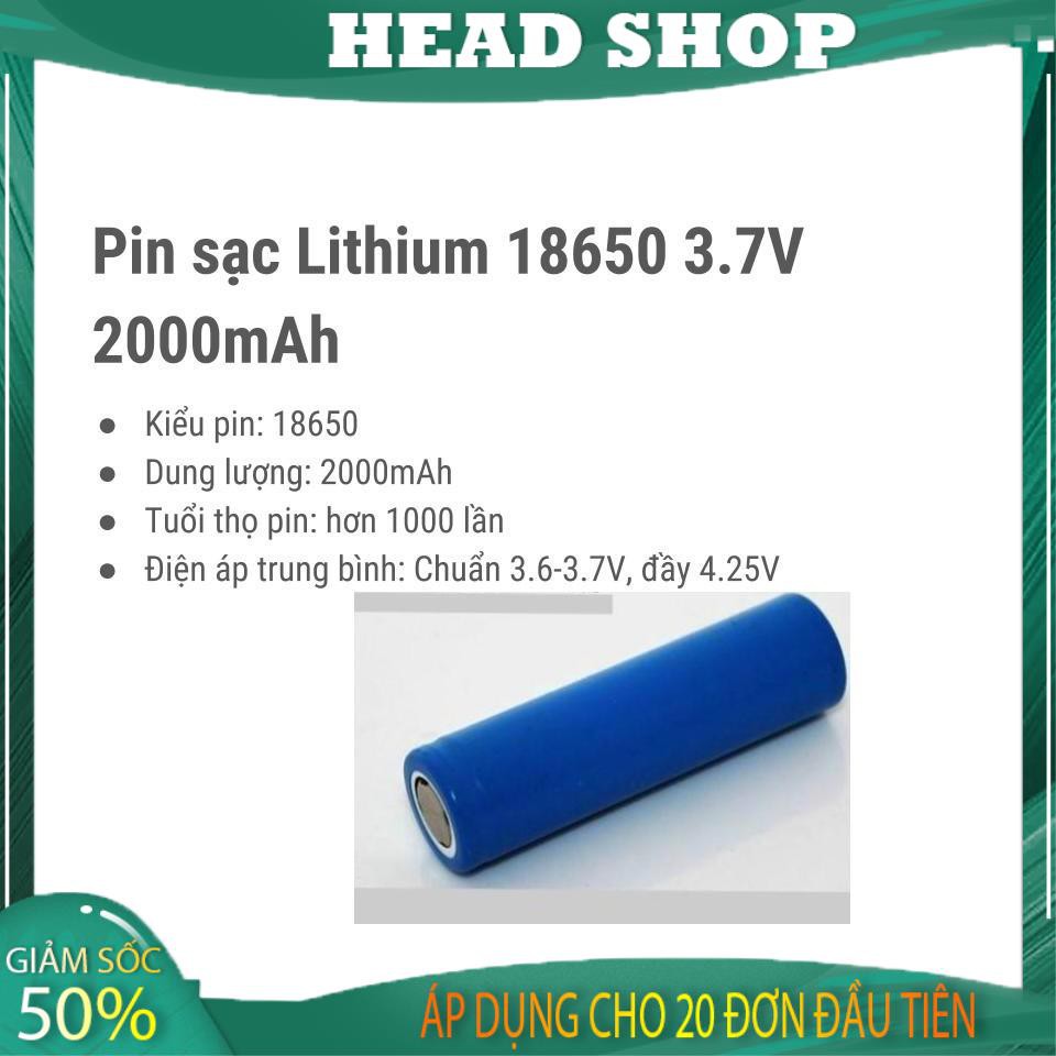 Pin sạc li-ion 3.7v 2A 18650 2000 mAh cho đồ điện tử HEAD shop