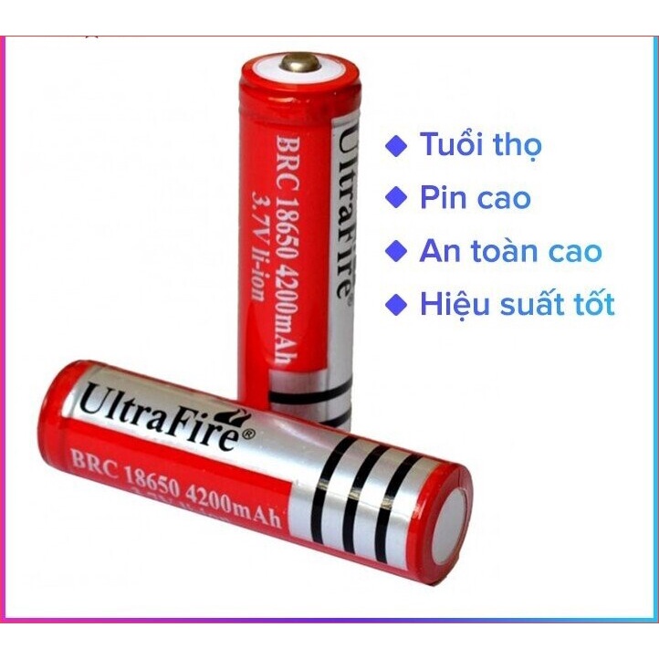PIN SẠC LITHIUM 18650 ULTRAFIRE 3.7V MÀU ĐỎ ĐẦU NHỌN DUNG LƯỢNG 4200MAH DÙNG CHO CÁC THIẾT BỊ ĐIỆN TỬ, ĐIỆN GIA DỤNG- Pin sạc Lithium 18650 Ultrafire 3.7V 4200mAh được sử dụng phổ biến các sản phẩm dùng pin sạc nhiều lần như đèn pin, bộ sạc, micro, bộ đàm, xe mô hình, quạt sạc mini, đèn pin laser,...