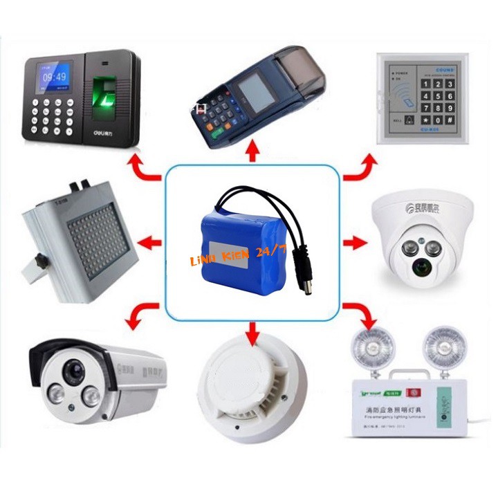 Dùng pin sạc cho các thiết bị Camera, pin dự phòng, đèn Led, quạt 12v ….