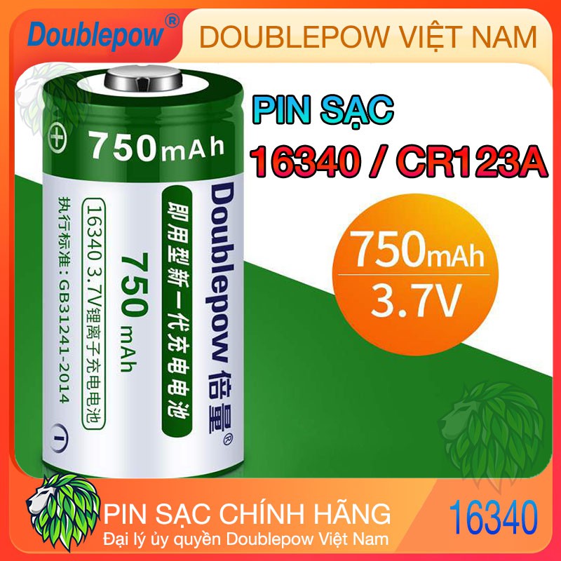 Pin Sạc Lithium-ion 16340 CR123A 750mAh Doublepow - Dung lượng thực - Pin Cho Đèn Pin Siêu Sáng