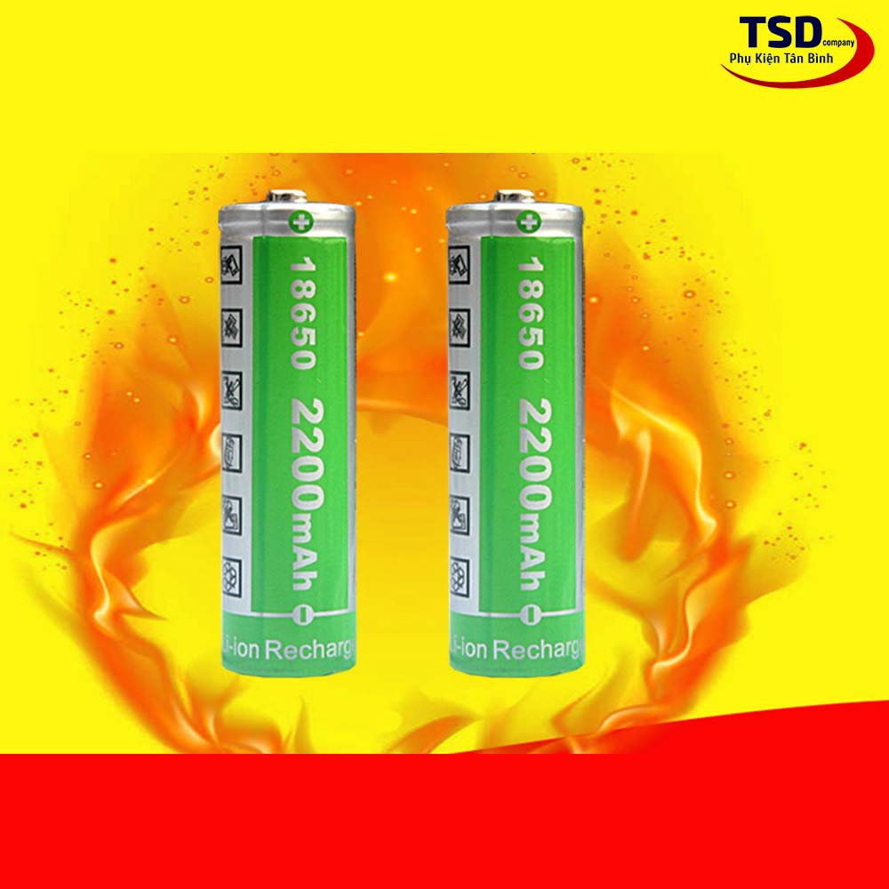 Pin Sạc Lithium-ion 18650 4.2V 2200mAh- Pin sạc Lithium (Li-ion) 18650 4.2V - 2200MAH được sử dụng phổ biến cho sản phẩm quạt siêu tốc cầm tay, loa, xe điện, đèn pin, thuốc lá điện tử, đèn led, đèn khẩn cấp, máy khoan vit, và các thiết bị điên tử khác.