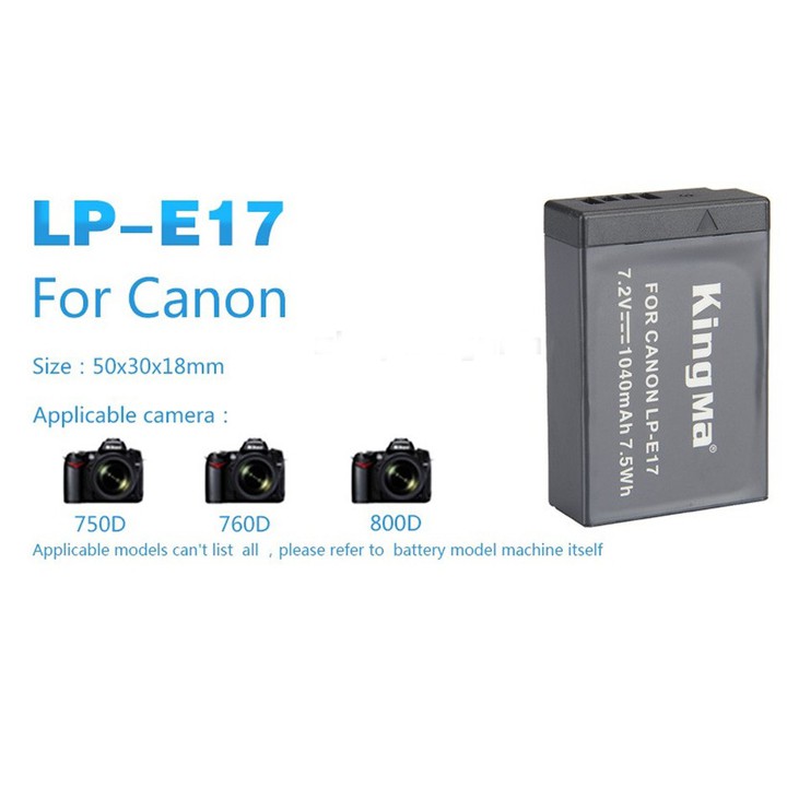 Pin sạc LP-E17 máy ảnh Canon EOS M3 M5 M6 750D 760D 800D KingMa 1040 mAh▶ Thông tin sản phẩm: