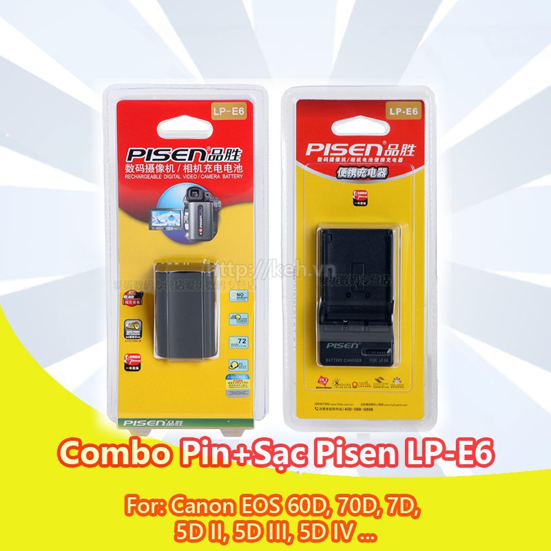 Pin, sạc LP-E6 PI SEN cho máy ảnh Canon EOS 5D II, 5D III, 5D IV, 60D, 70D, 7D.