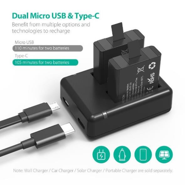 Giới thiệu Pin sạc máy ảnh Ravpower RPPB074 cho Gopro Hero 5/6/7/8 Black/Silver/White