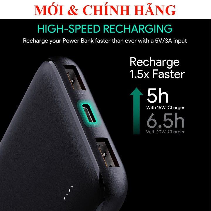 SẠC DỰ PHÒNG 10.000 MAH AUKEY PB-N73Pin Sạc Mỏng Nhất, 1 Cổng Sạc Tốc độ cao USB-C 15W + 2 Cổng USB-A