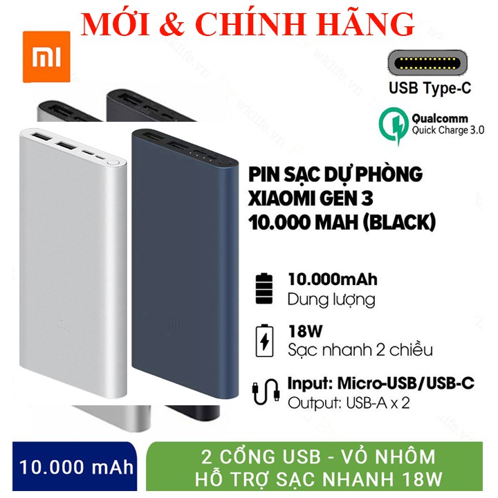 - Sạc dự phòng Xiaomi Gen 3 10000mAh USB-C phiên bản sạc nhanh hai chiều hỗ trợ giao thức sạc. Dòng sạc thiết bị nhận dạng thông minh, hỗ trợ sạc nhanh 18W Max.