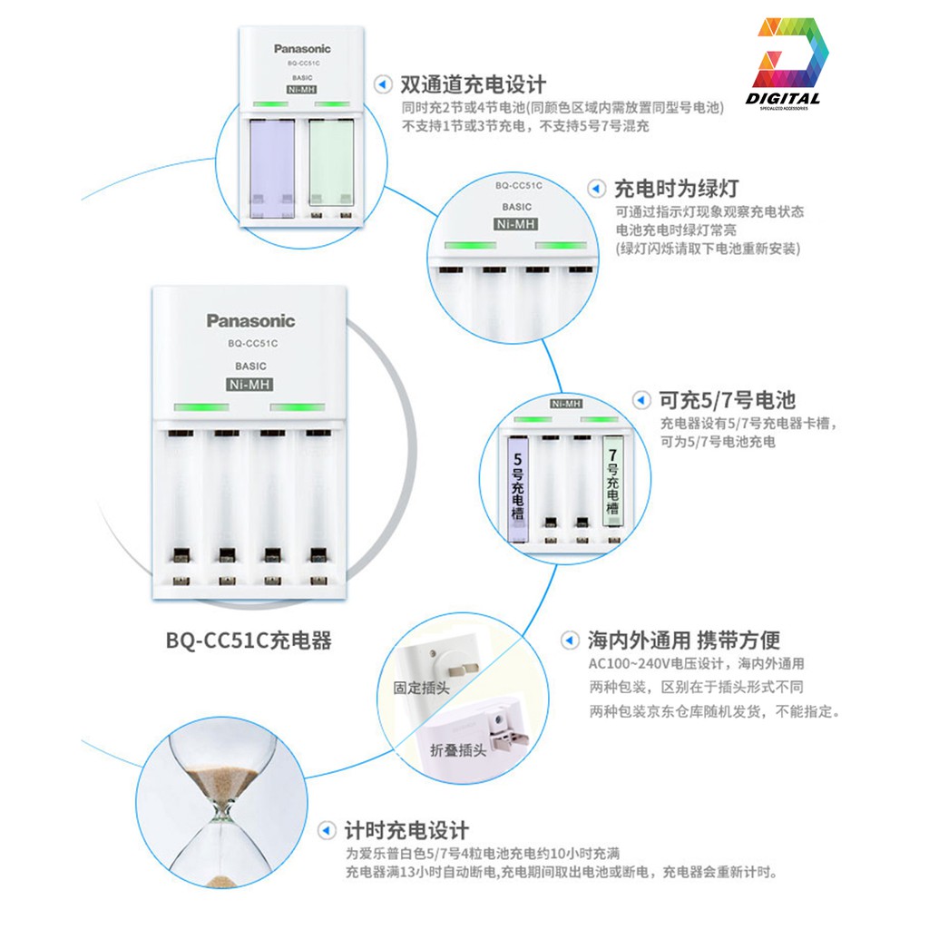 Giới thiệu [Mã 154ELSALE2 giảm 7% đơn 300K] Bộ Pin Sạc PANASONIC BQ-CC51C Chính Hãng