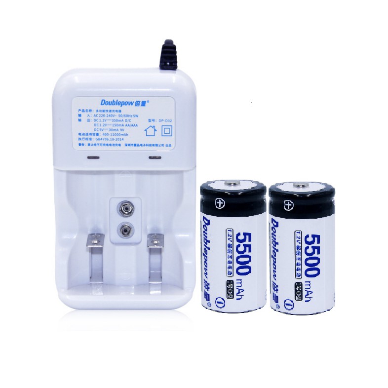 Bộ pin + sạc pin Pin Đại ( Pin Số 1) dung lượng 5500mah Doublepow dùng cho bếp gas, đèn pin, chuông báo động...