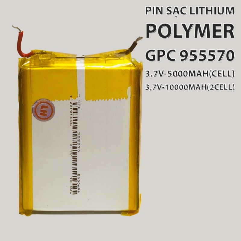 PIN Sạc Polymer GPC 955570 3,7v Dung lượng 5000mAh/Cell (10000mAh/2Cell) Pin Xịn Sò (Ảnh Shop tự chụp)