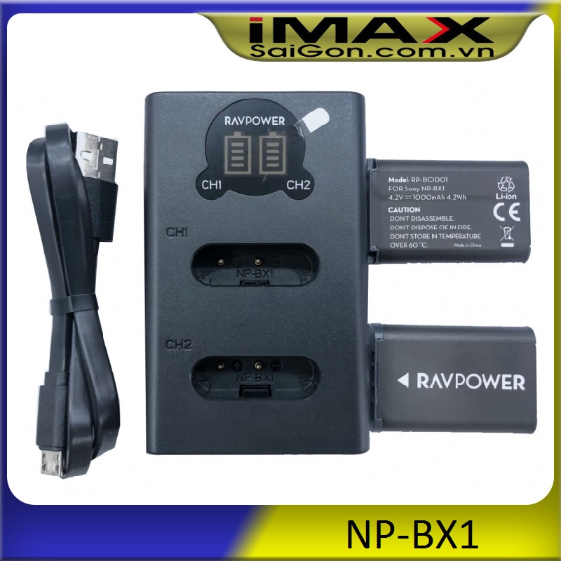 Bộ sạc pin NP-BX1 RAVPower dành cho máy ảnh Sony SC-RX100 & DSC-RX1, WX300, HX300..,...tương thích 100%.