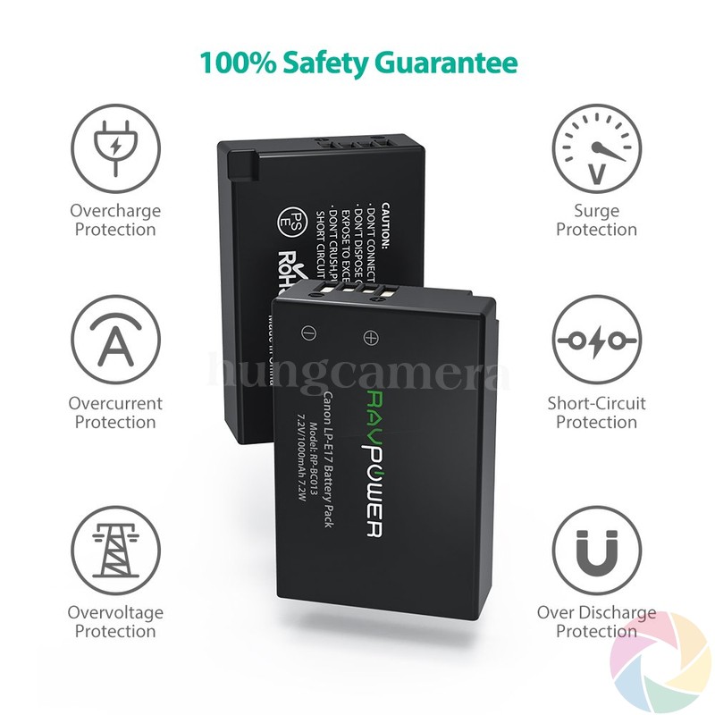 Chú ý: Riêng dòng Pin Lp-e17 tất cả các hãng Pin For không riêng gì dòng Ravpower này, Pin không dùng với sạc Zin theo máy Canon, do Canon mã hoá.