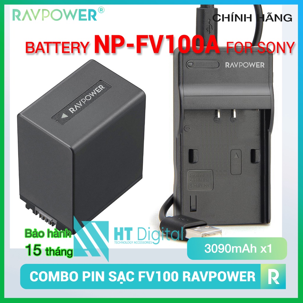 Bộ pin sạc RAVPower NP-FV100A cho Sony NEX, HXR, DEV, HDR, DCR, FDR (Hàng chính hãng)