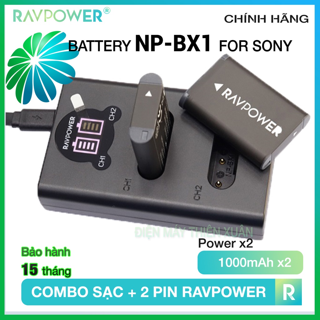 Bộ Pin Sạc Sony NP-BX1 Ravpower RP-BC1001 cho máy ảnh DSC-RX1RM2 RX1R II DSC-RX100 RX100M2 RX100M3 WX500 X1000V HDR-AS10