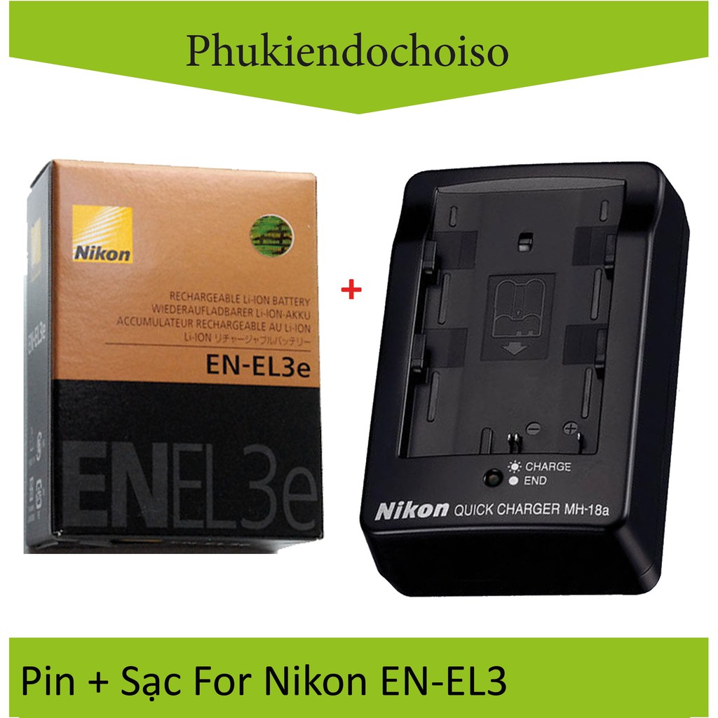 Bộ pin sạc gồm:+ 1 Pin thay thế Pin máy ảnh Nikon EN-EL3e