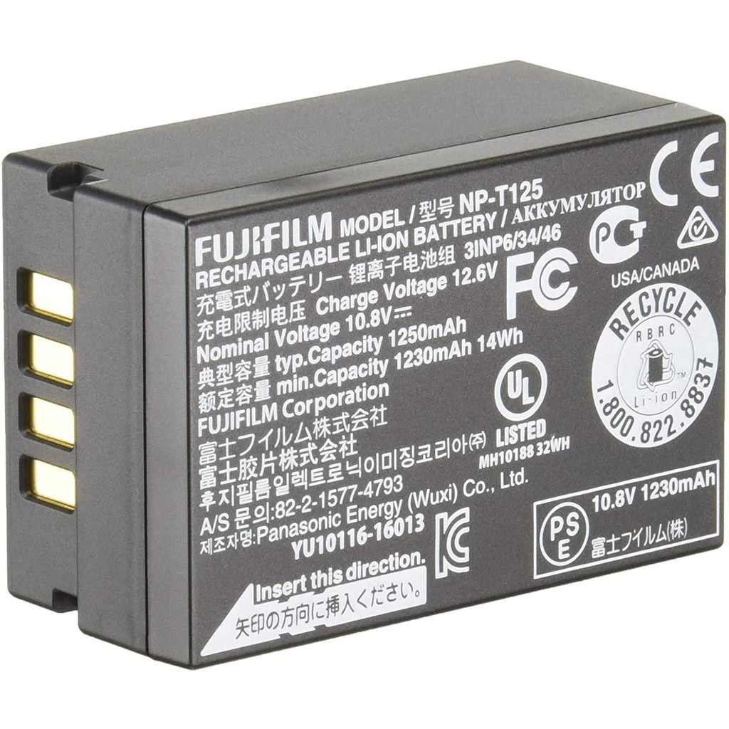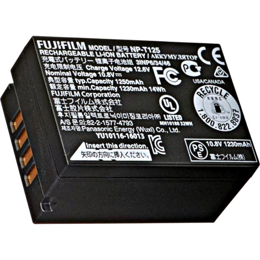 NP-T125 hoạt động ở điện áp 10,8V và có dung lượng 1250mAh. Nó có thể được sạc từ ổ cắm điện tiêu chuẩn thông qua bộ sạc Fujifilm BC-T125 (có thể được mua riêng. Bộ pin có kích thước chiều rộng 36mm, chiều cao 26mm và chiều sâu 54mm. Nó nặng 81g.