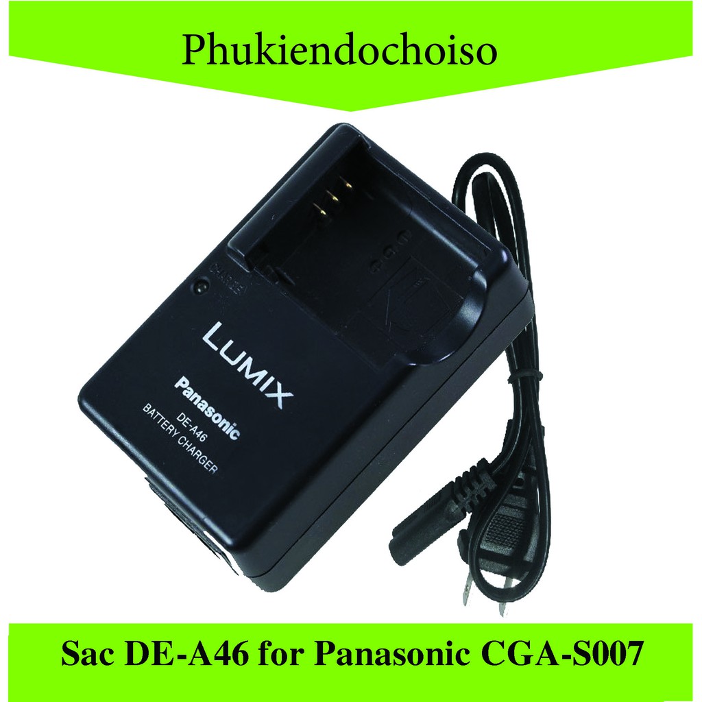 - Bộ sạc pin chính hãng Panasonic DE-A46 cho máy ảnh Panasonic Lumix DMC-TZ1, DMC-TZ2, DMC-TZ3 và nhiều mẫu khác sử dụng pin Panasonic CGA-S007.