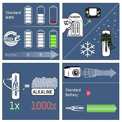 Tương thích với tất cả các bộ sạc Ni-MH chuẩn có trên thị trường.