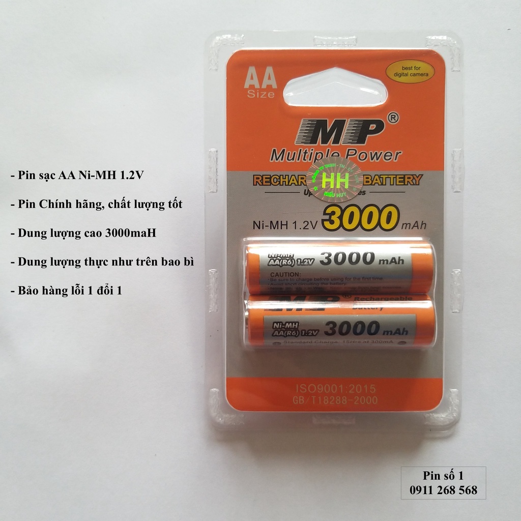 Pin sạc tiểu AA MP dung lượng cao 3000maH vỉ 2 viên