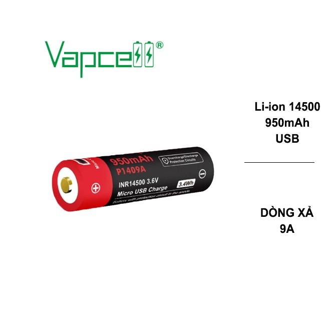 Pin sạc Vapcell P1409A 14500 950mah có tích hợp cổng sạc USB