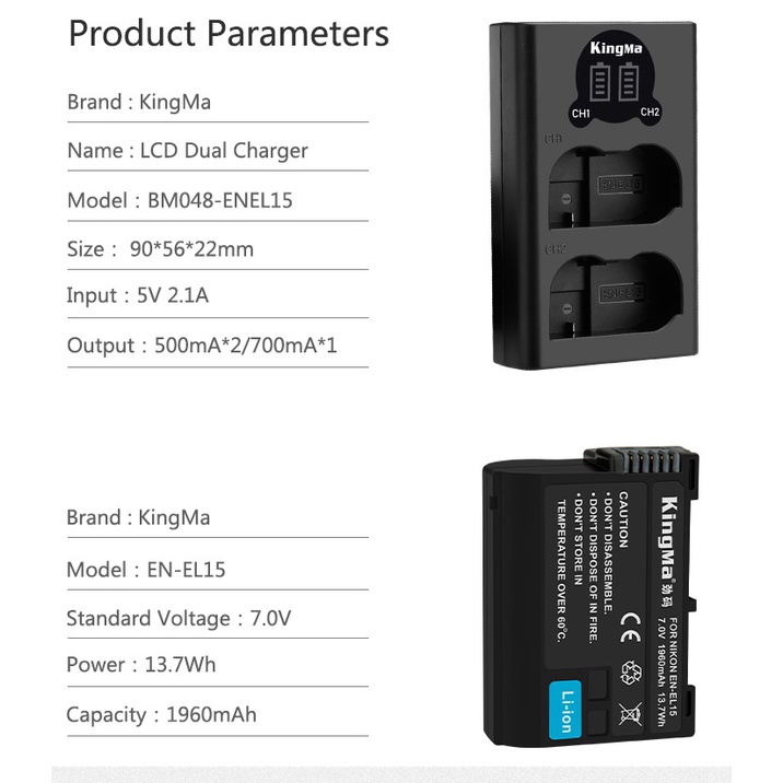 Thương hiệu: Kingma | Xem thêm các sản phẩm Pin - Sạc máy ảnh, máy quay của KingmaMô tả ngắn