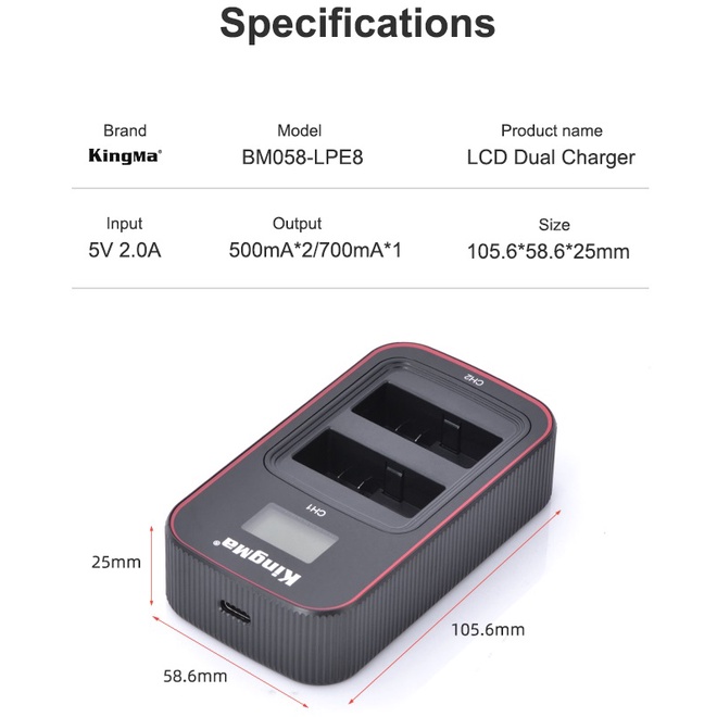 Thương hiệu: Kingma | Xem thêm các sản phẩm Pin - Sạc máy ảnh, máy quay của KingmaMô tả ngắn